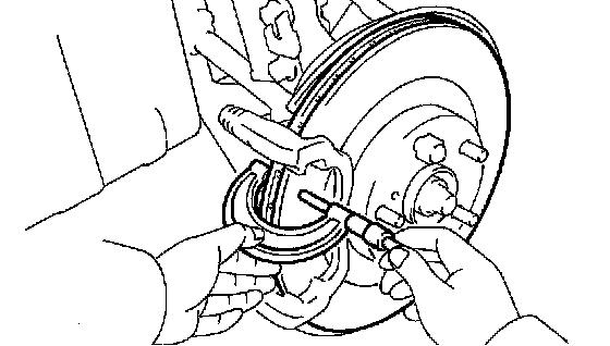 a. Put a piece of cloth or equivalent between the piston and the caliper.