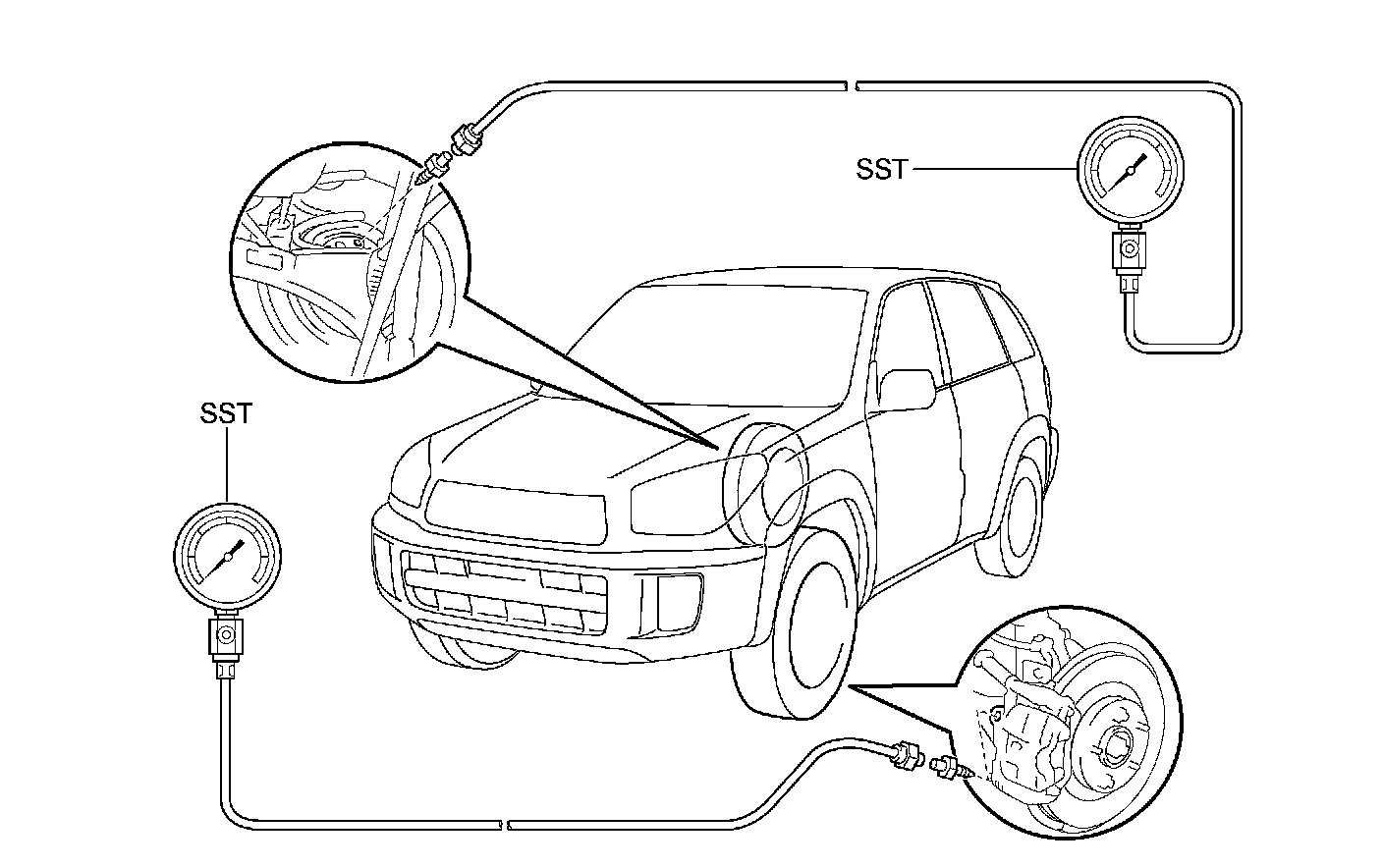 When inspecting the fluid pressure, inspect the left front and right rear together, and the right front and left rear together. If the rear wheel cylinder pressure is incorrect, replace the P valve assembly.