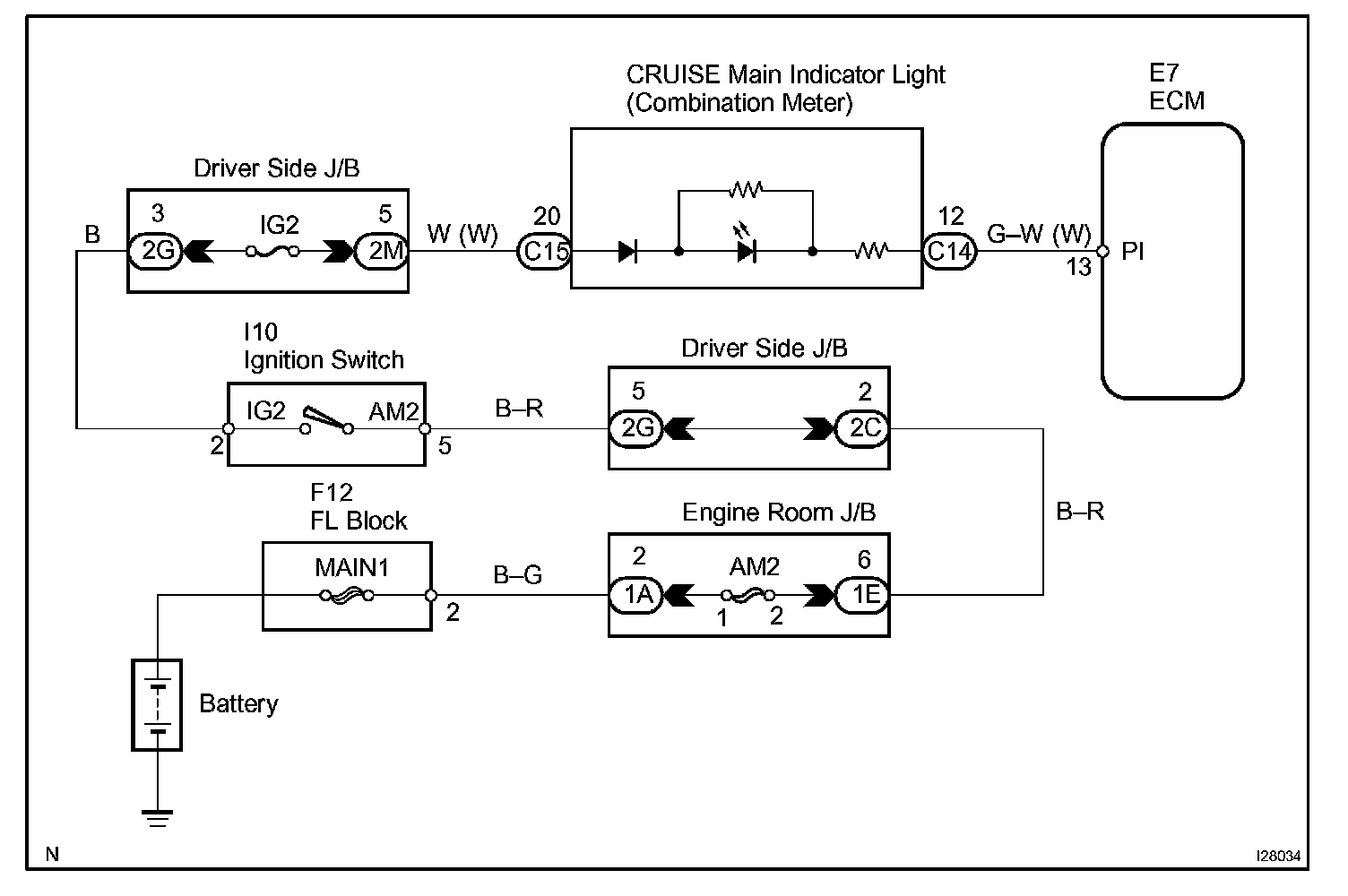 When the cruise control main switch is turned ON, the CRUISE main indicator light illuminates.