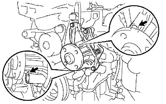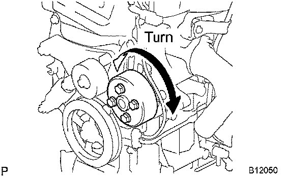 b. Turn the pulley, and check that the water pump bearing moves smoothly and quietly.