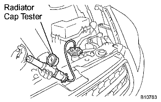 a. Fill the radiator with coolant and attach a radiator cap tester.