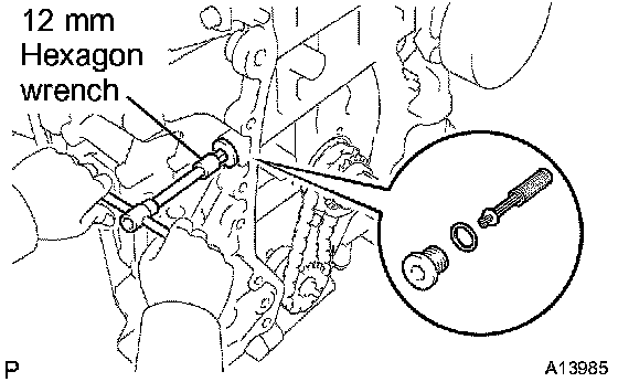 Using a 12 mm hexagon wrench, remove the plug, gasket and OCV filter.