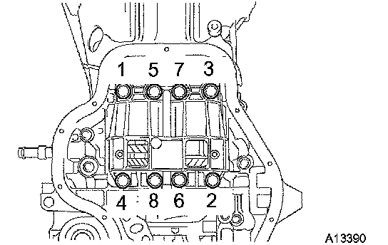 a. Uniformly loosen and remove the 8 bolts in several passes, in the sequence shown.