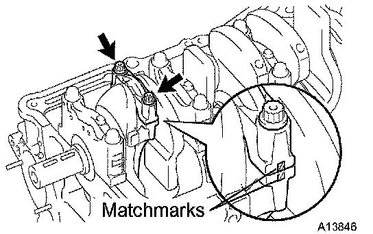 a. Check the matchmarks on the connecting rod and cap are aligned to ensure correct reassembly.