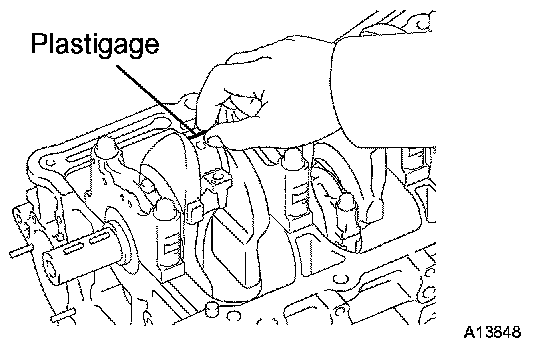 g. Lay a strip of Plastigage across each journal.