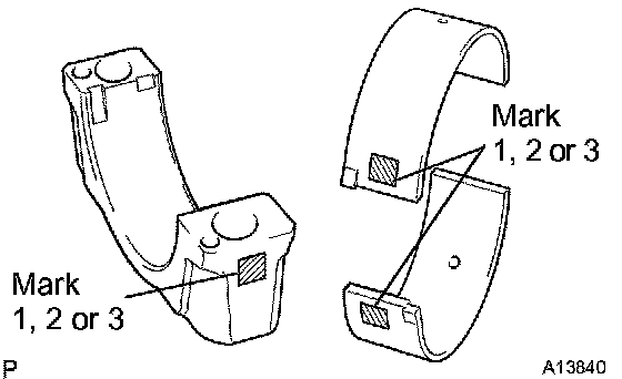 HINT: If replacing a bearing, replace it with one having the same number as marked on the connecting rod. There are 3 sizes of standard bearings, marked 1, 2 and 3 accordingly.