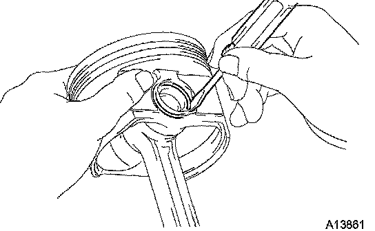 a. Using a piston ring expander, remove the 2 compression rings.