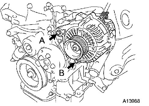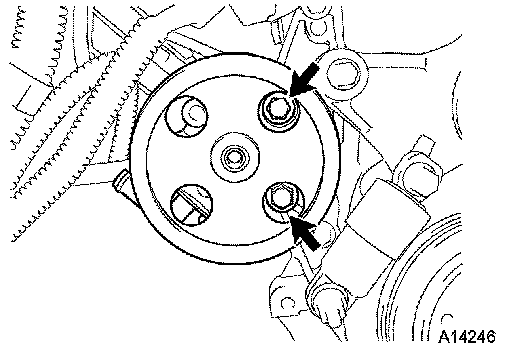 b. Hold the crankshaft pulley bolt with a wrench, and install the 6 bolts evenly.