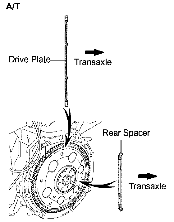 c. Install the drive plate and rear spacer as shown in the illustration.