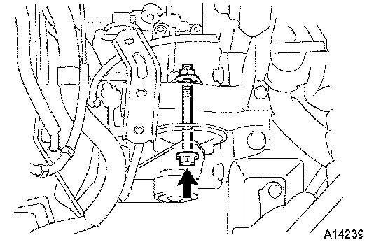 b. Install the bolt holding the rear engine mounting bracket to the mounting insulator.