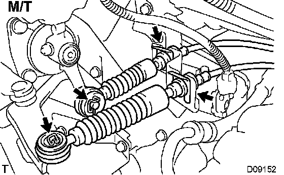 25. M/T: CONNECT SHIFT CONTROL CABLES TO TRANSAXLE