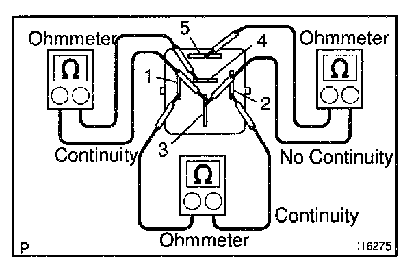 2. Using an ohmmeter, check that there is continuity between terminals 3 and 5.