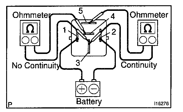 1. Using an ohmmeter, check that there is continuity between terminals 1 and 2.