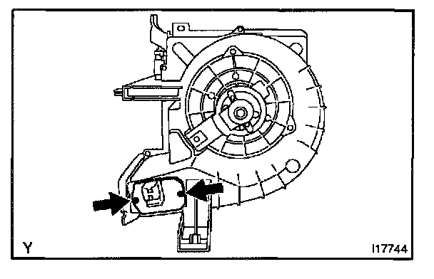 Remove the 2 screws and blower resistor.