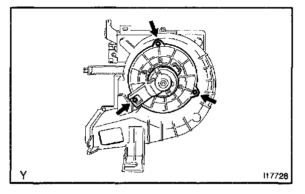 Using a torx wrench, remove the 3 screws and blower motor.