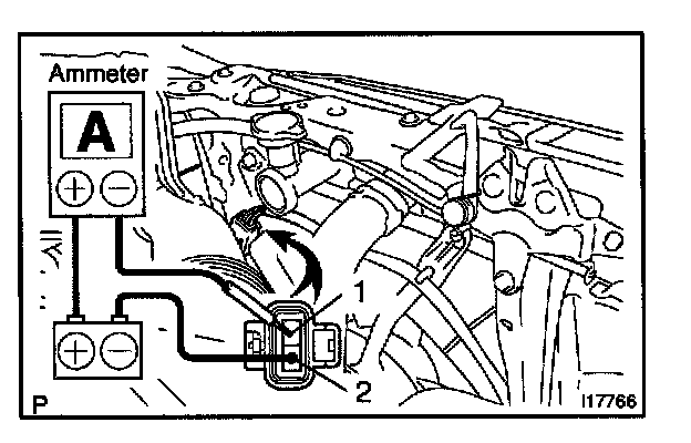 b. Connect the battery and ammeter as shown in illustration.