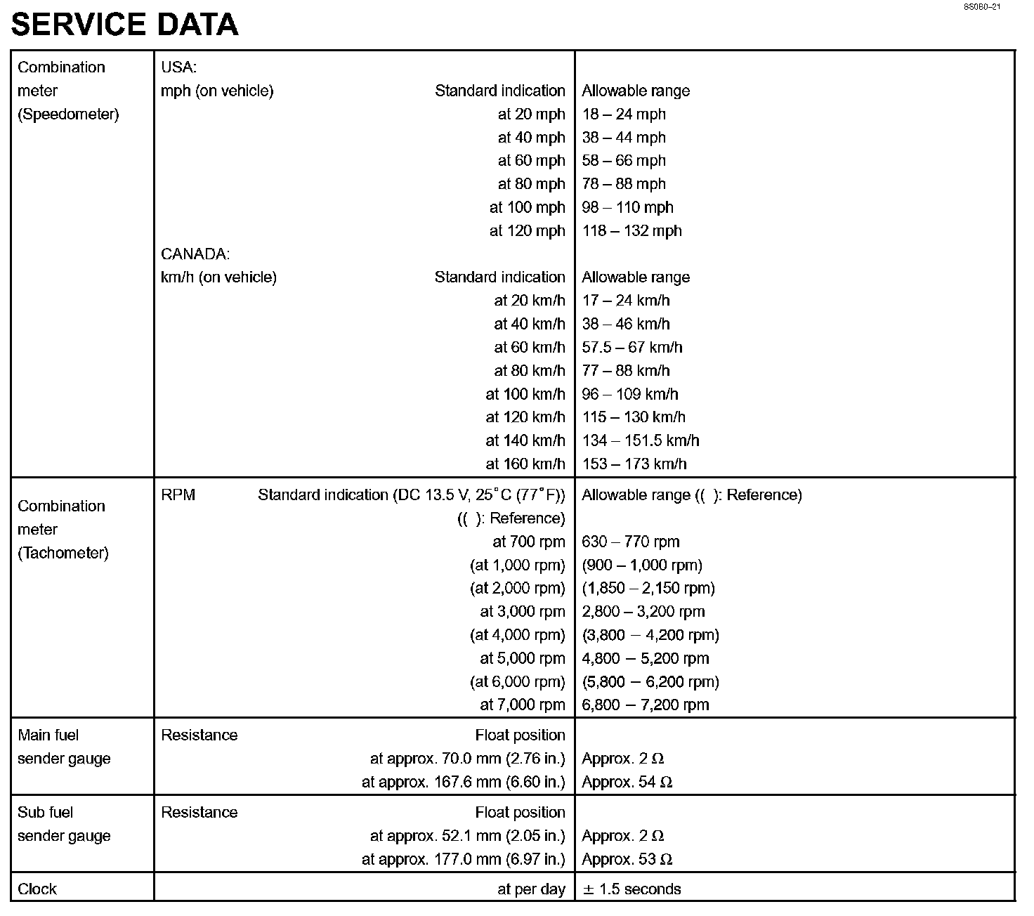 Instrument Panel, Gauges and Warning Indicators: Specifications