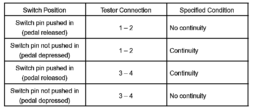 If the continuity is not as specified, replace the switch.