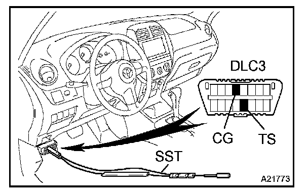 b. Using SST, connect terminals TS and CG of the DLC3.