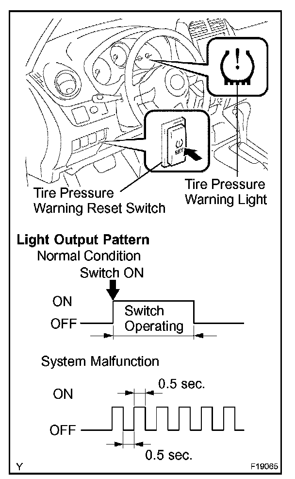 - When there is a problem with the tire pressure warning system, the tire pressure warning light blinks at 0.5 second intervals.