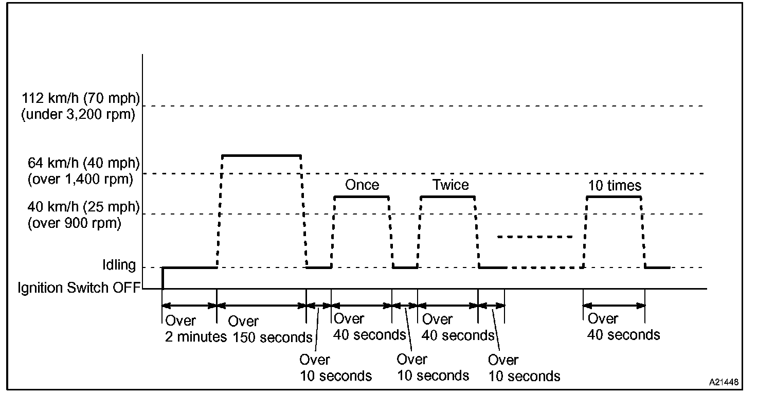 If IAT is less than 10 °C (50 °F) when the engine was started, drive the vehicle at 64 to 88 km/h (40 to 55 mph) for an additional 4 minutes.