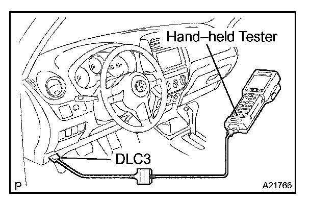 1. Connect the hand-held tester or the OBD II scan tool to the DLC3.