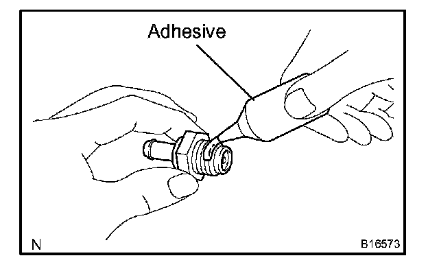 1. Apply adhesive to 2 or 3 threads.