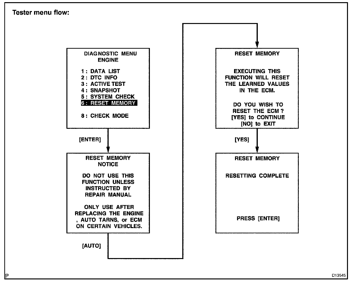 CAUTION: After performing the RESET MEMORY, be sure to perform the ROAD TEST described earlier in this section.
