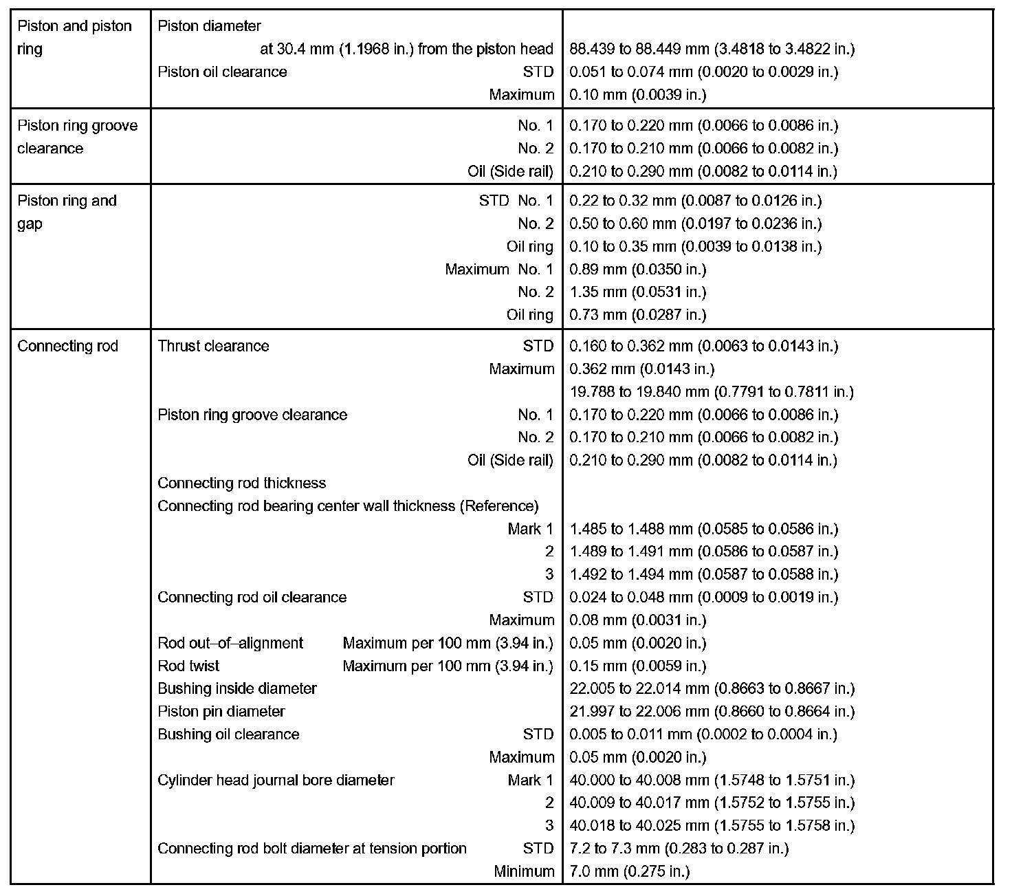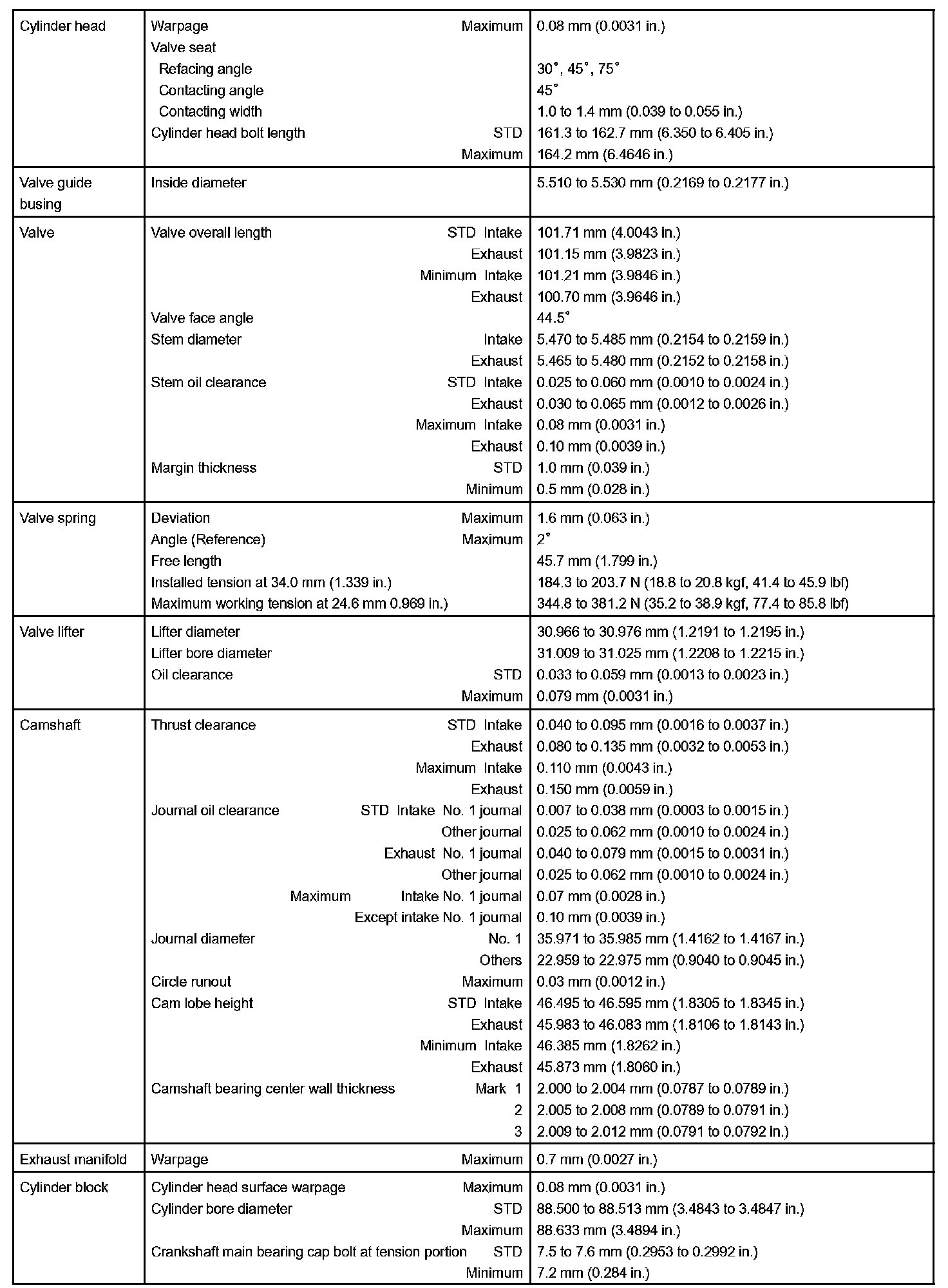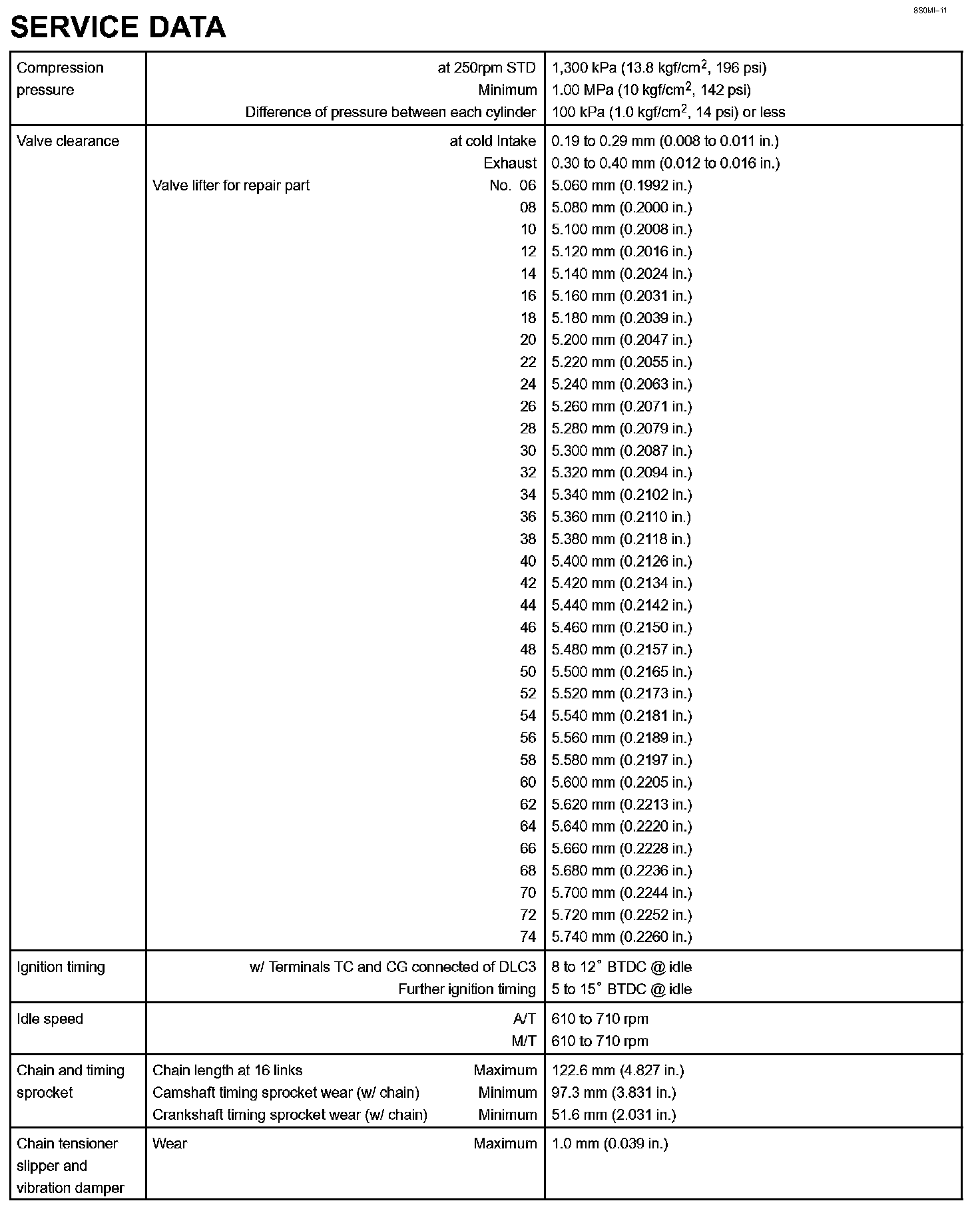 Engine Mechanical - Service Data Part 2: