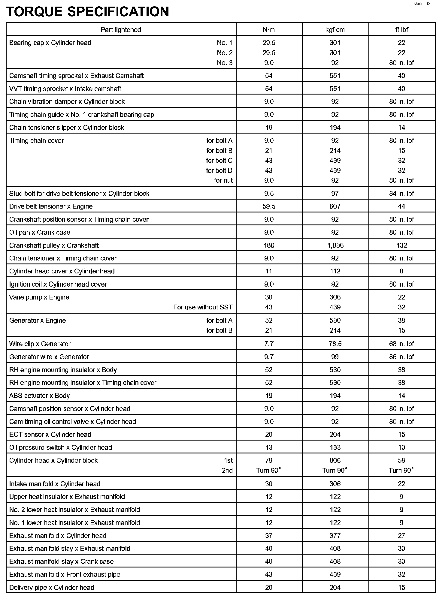 Engine Mechanical - Torque Specification Part 1: