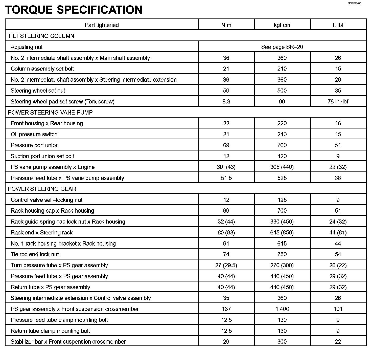 Steering - Torque Specification:
