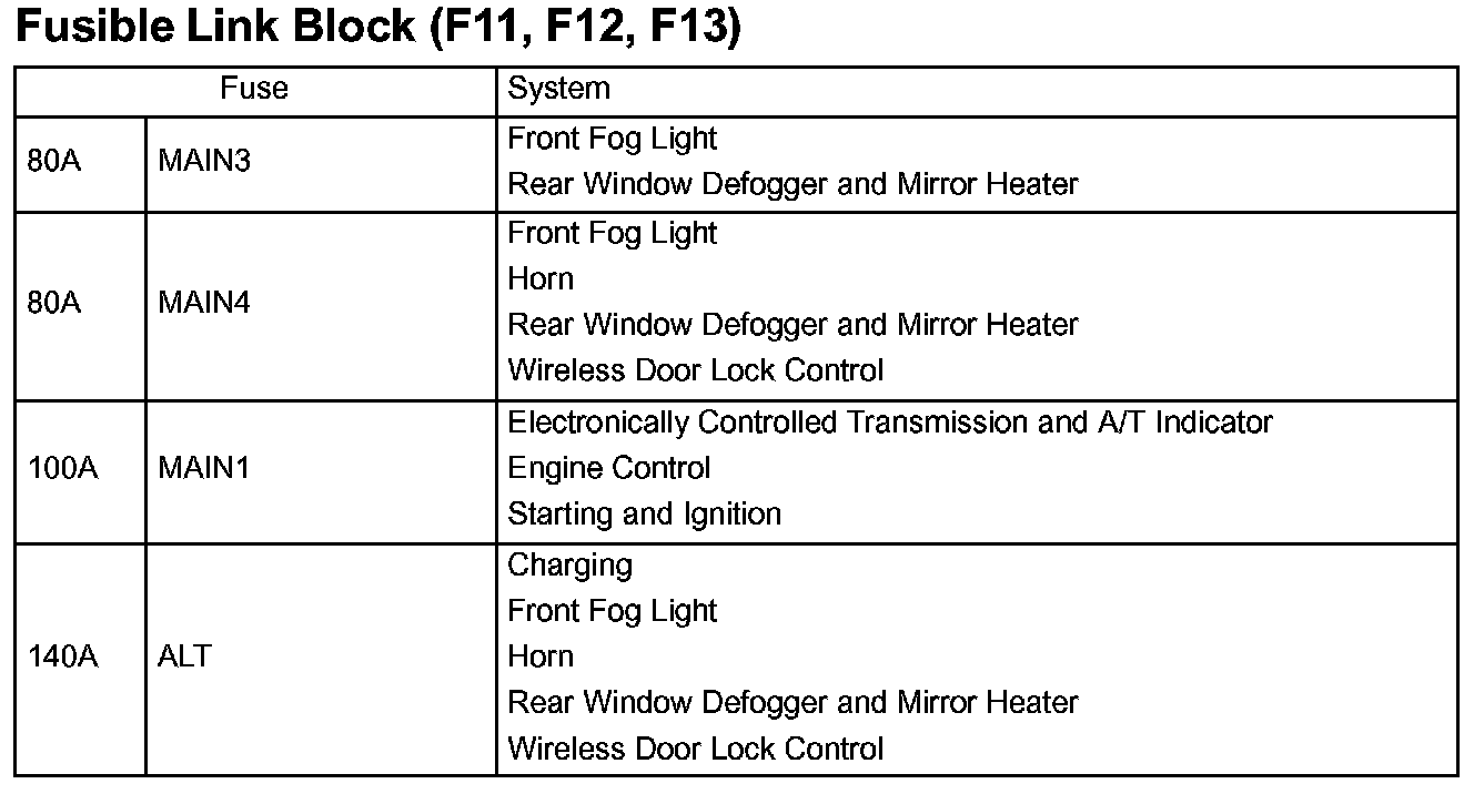 Fusible Link Block (F11, F12, F13):