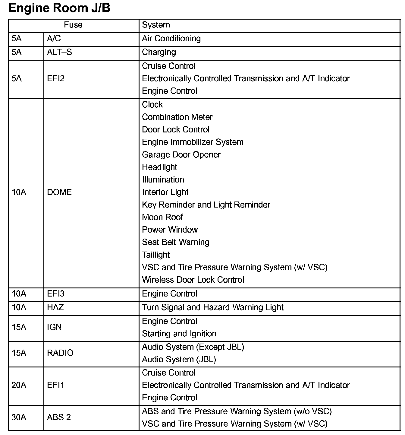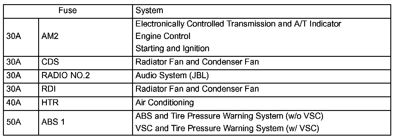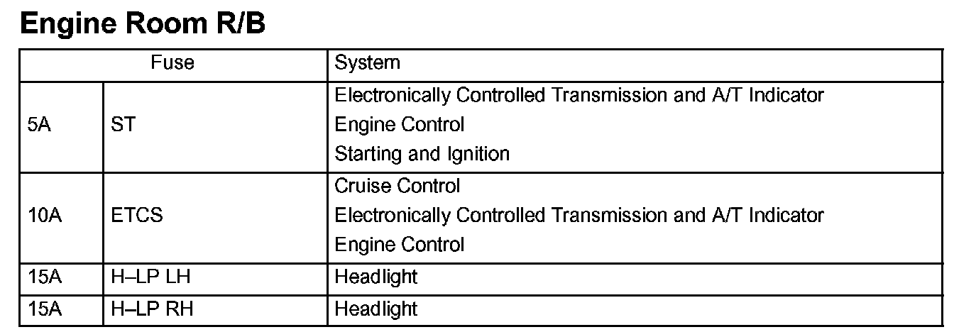 Engine Room Fuse Details