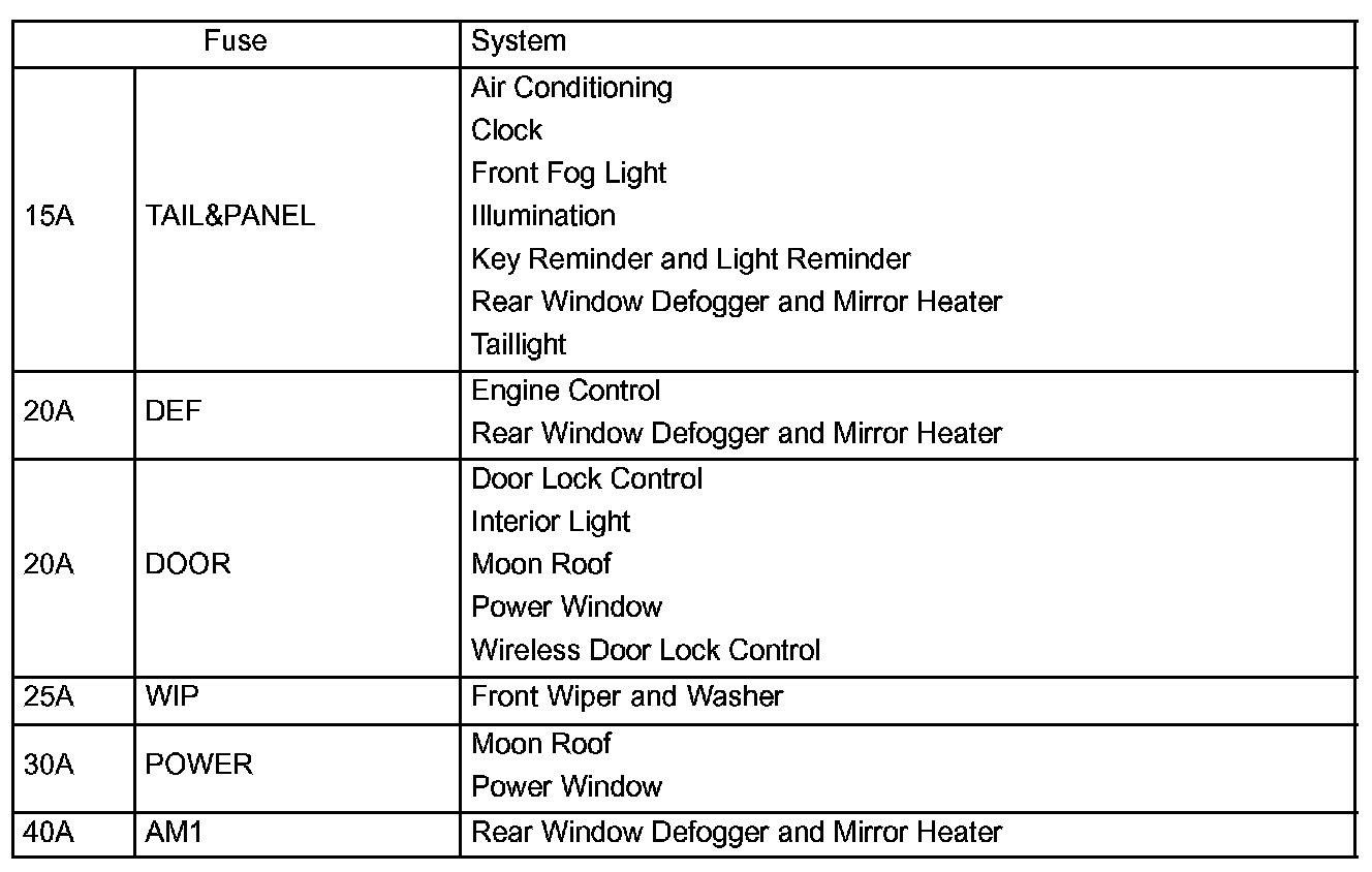 Interior Panel Fuse Details