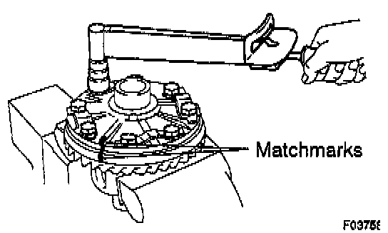 a. Place matchmarks on the ring gear and differential case.