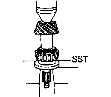 a. Using SST, remove the front bearing from the drive pinion.