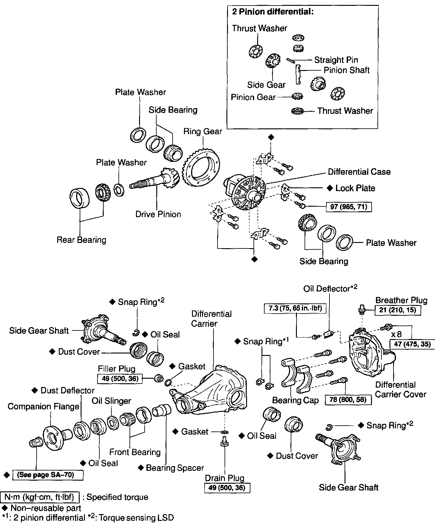 1. 2 pinion differential: