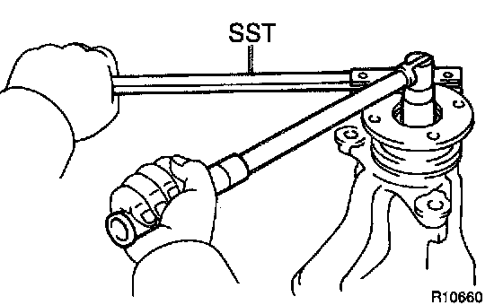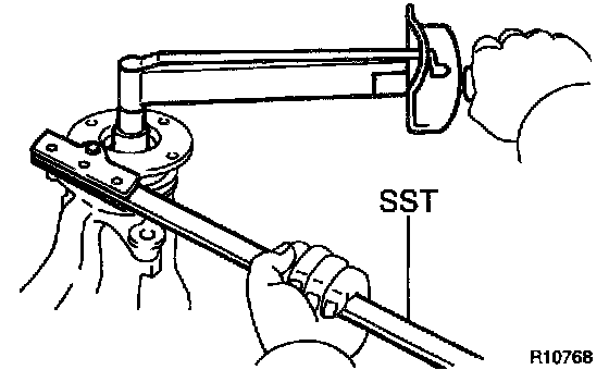 c. Using SST to hold the flange, torque the nut.