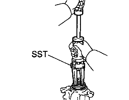 b. Using SST, install the 2 side gear shafts until they contacts the pinion shaft.
