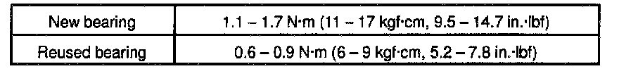 Preload (at starting): 0.6 - 0.9 Nm (6 - 9 kgf-cm, 5.3 - 8.0 inch lbs.)