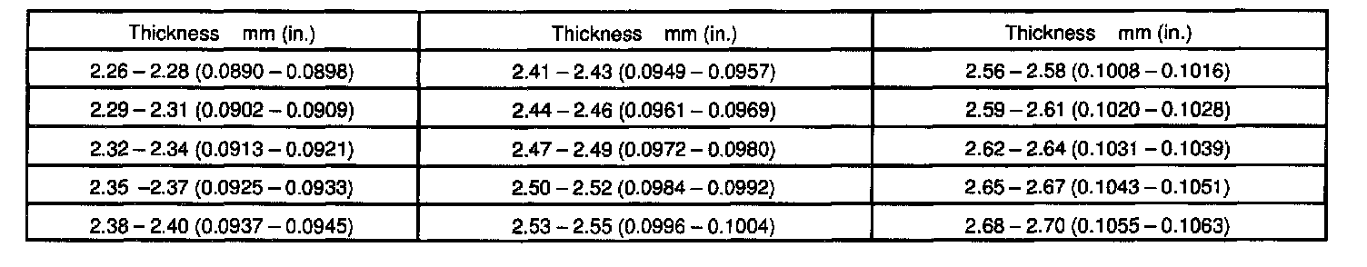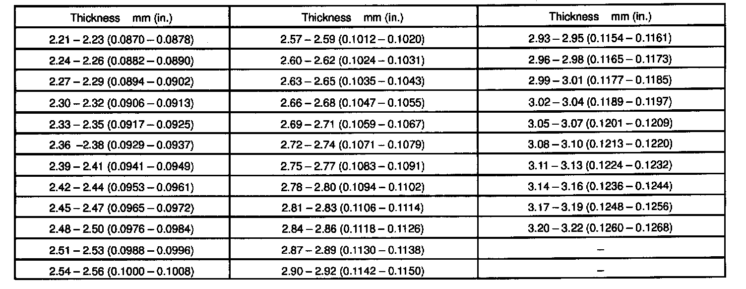If the teeth are not contacting properly, use the following table to select a proper washer for correction.