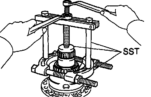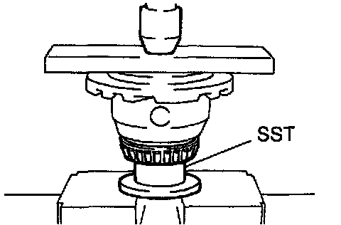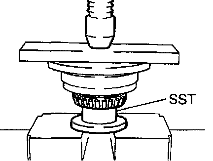 e. Using SST and a press, install the tapered roller bearing outer race.