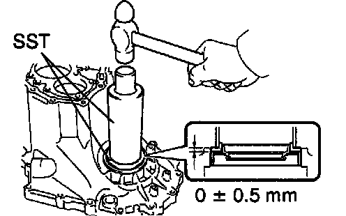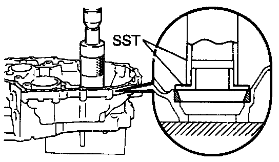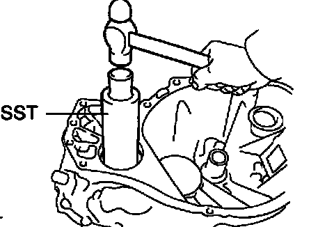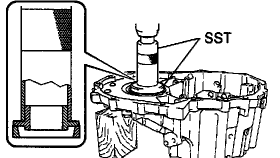 1. Transmission Case Side: REPLACE OIL SEAL AND TAPERED ROLLER BEARING OUTER RACE