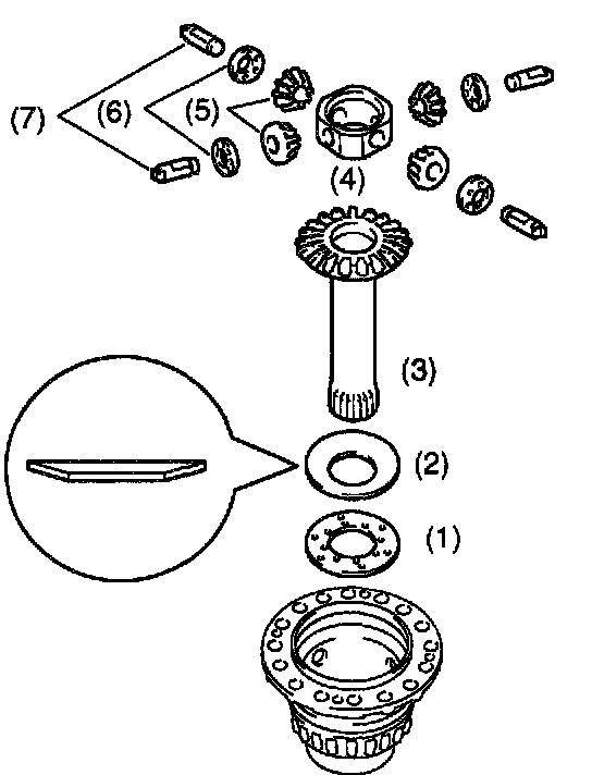The temporarily installed a 1.0 mm (0.039 inch) thick NO. 2 side gear thrust washer is used for reference when checking backlash.