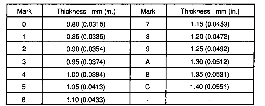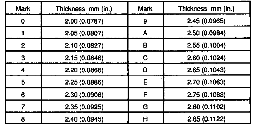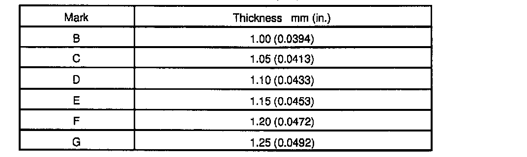 If the backlash is out of the specification, refer to the table and select a thrust washer, which will ensure that the backlash is within the specification.