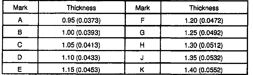 Standard clearance: 0.16 - 0.25 mm (0.006 - 0.010 inch)