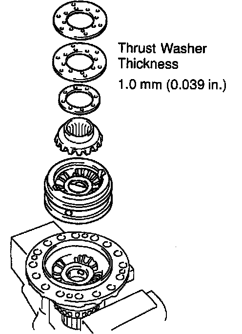 2. Install the temporarily install a 1.0 mm (0.039 inch) thick thrust washer.
