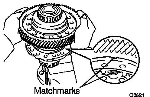 HINT: Align the matchmarks on the NO. 2 differential case and connect the ring gear.