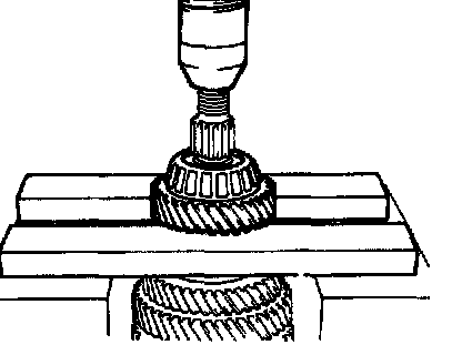 Using a press, remove the 3rd driven gear and 2nd gear.