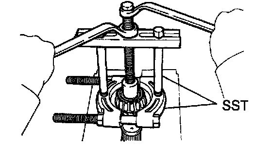 Using SST, remove the output shaft front bearing.